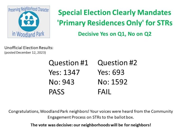 The election followed extensive community discussion about short-term rental regulations and resulted in the passage of the Citizens Initiative in a landslide vote.